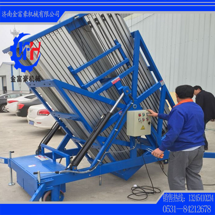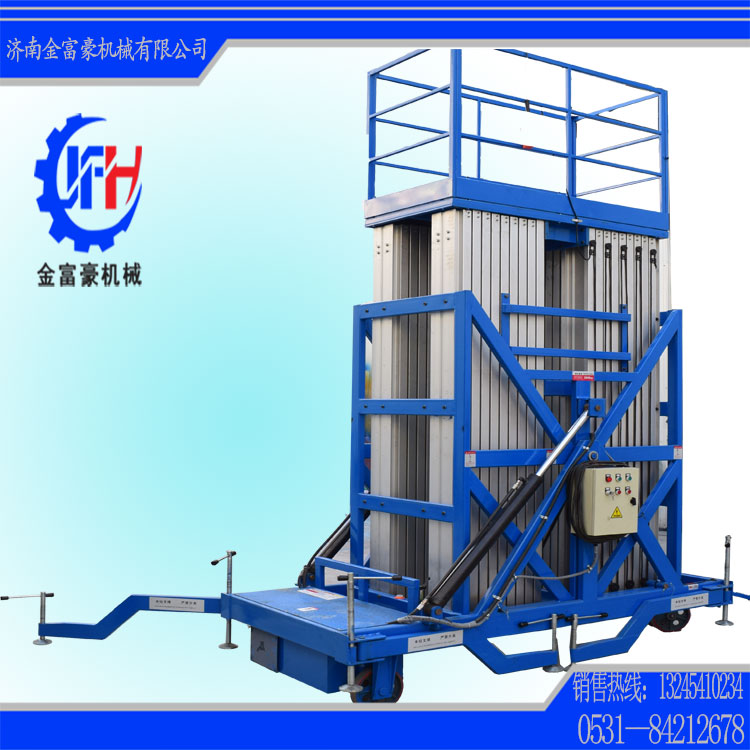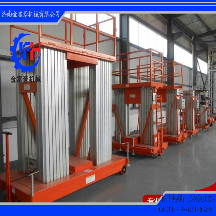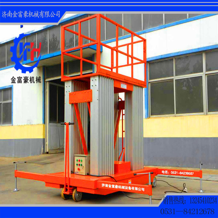 濟(jì)南金富豪升降機(jī)械設(shè)備有限公司是專業(yè)生產(chǎn)液壓升降平臺(tái)和物流搬運(yùn)設(shè)備的廠家之一,主營剪叉式高空作業(yè)平臺(tái)、移動(dòng)式升降機(jī)、移動(dòng)式升降平臺(tái)、鋁合金式升降機(jī)、導(dǎo)軌式升降貨梯、汽車升降機(jī)、升降舞臺(tái)等等。本公司生產(chǎn)設(shè)備精良、工藝先進(jìn)合理、檢測手段齊全、技術(shù)力量雄厚,所有產(chǎn)品符合國家行業(yè)標(biāo)準(zhǔn),全部產(chǎn)品已經(jīng)通過國家特殊設(shè)備檢測站檢測。公司一直堅(jiān)持“以誠為本,精益求精”的經(jīng)營思想,非常注重團(tuán)隊(duì)建設(shè)及企業(yè)文化建設(shè),是山東省重合同,守信譽(yù)企業(yè)。歡迎廣大用戶來廠實(shí)地考察、洽談合作。